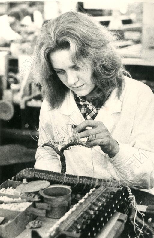 Межкаускайте Янина, шнуровщица цеха №8, член комсомольского бюро цеха, комсорг участка, депутат районного Совета народных депутатов. Победитель ударной вахты в честь 60-летия ВЛКСМ, завод АДС