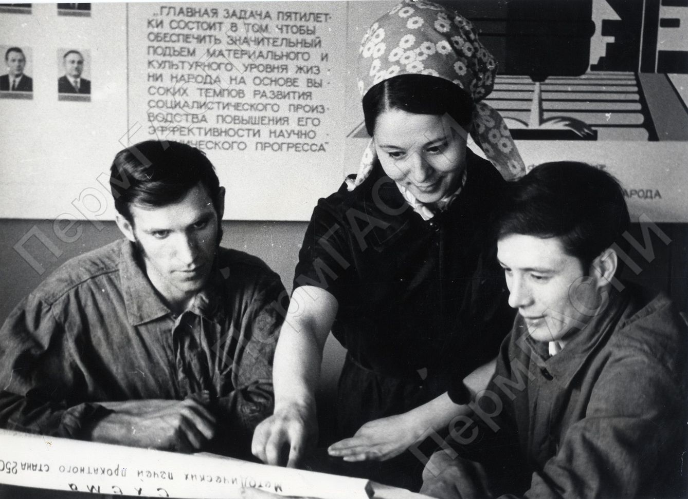 Бригадир комсомольско-молодежной бригады волочильщиков цеха 01 Козырева Галина и (справа) лучший волочильщик цеха И.Болдов. Камский кабельный завод им. 50-летия СССР.