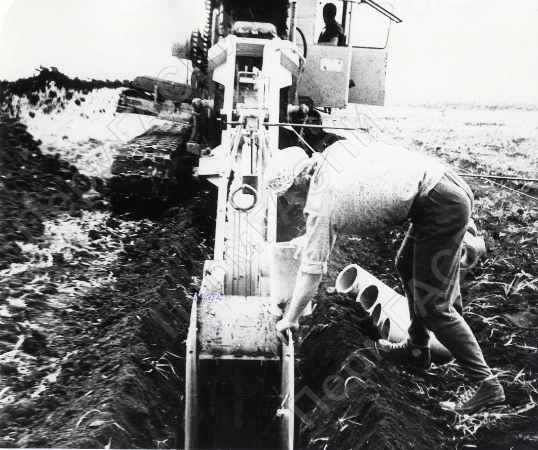 Комсомолец цеха 14 Камского кабельного завода В.Елькин проводит закладку труб на мелиоративном комплексе "Красава"