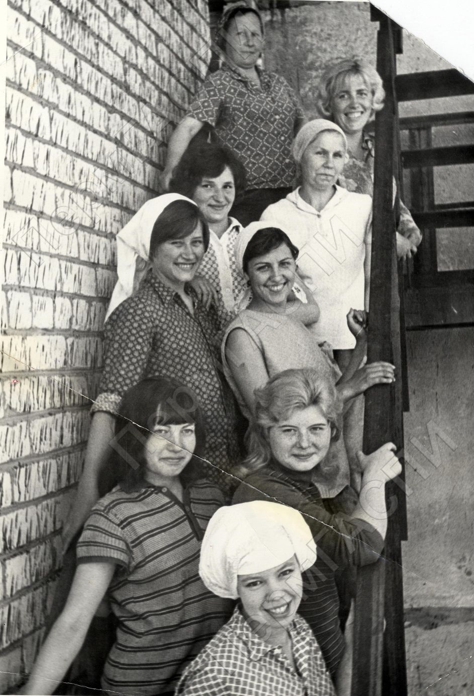 Одна из лучших комсомольско-молодежных бригад треста № 1. Штукатуры-маляры из бригады Н.В. Мятишкиной. Сверху вниз: Мятишкина Н.В., Кокшарова, Печенкина, Дылдина, Дец, Дайлида, Бекиш, Зайцева, Кашникова