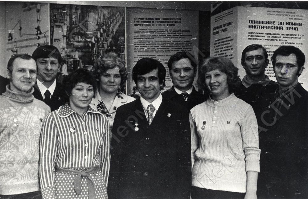 Молодые гвардейцы 9-й пятилетки: 1-й Копылов Борис - секретарь к/о опытного цеха, 4-Наумов Николай -группкомсорг цеха электролиза, 5-Люков Ильгиз - член комитета ВЛКСМ, 6-Заразилова Валентина -группкомсорг I отделения ремонтно-механического цеха, 7-Деменев Павел - зам. секретаря к/о цеха электролиза.