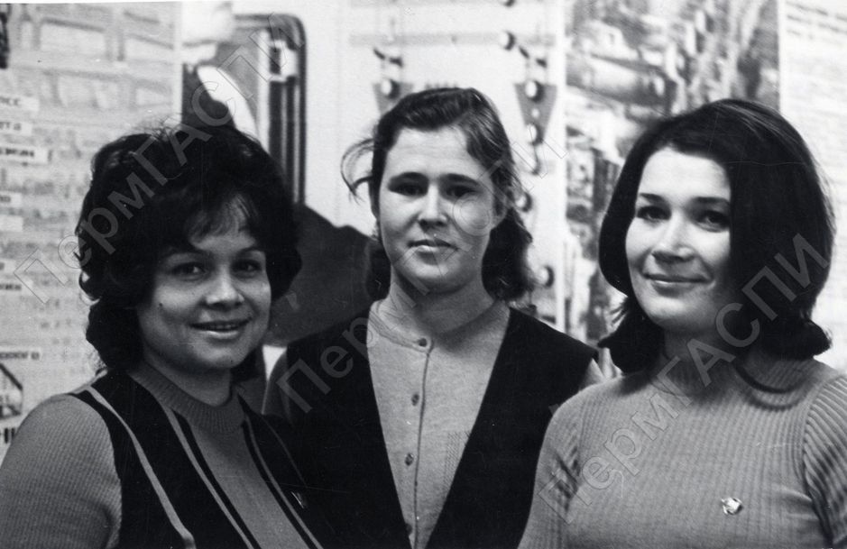 Комсомольцы Березниковского титано-магниевого комбината, первыми получившие комсомольские билеты образца 1975 г. Кнауб Р. - член комитета ВЛКСМ, Узингер Э. - группкомсорг, Калинина Н., секретарь.