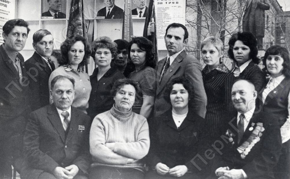 30-летие Победы. У знамени комсомольской организации Березниковского титано-магниевого комбината: I ряд-Абрамов Н.Ф. - ветеран В.О.В., Сурина Т.Я. - ветеран В.О.В., Кораго Н.Р. - ветеран комсомола, Алексеев Н.М. - ветеран В.О.В. и комсомола; 2 ряд:1-й Касимцев Ю.П. - герой соц. труда,2-й Залесов В.И. зам. секретарь комитета ВЛКСМ, 5-й Щукин В.И. - секретарь к/о цеха восстановления и дистилляции, 7-й Исаков Н.К. - секретарь комитета ВЛКСМ ТэТНК, сфотографированный у знамени победы в Москве,10-я Кожемякина Н.А. - зам. секретаря комитета ВЛКСМ.
