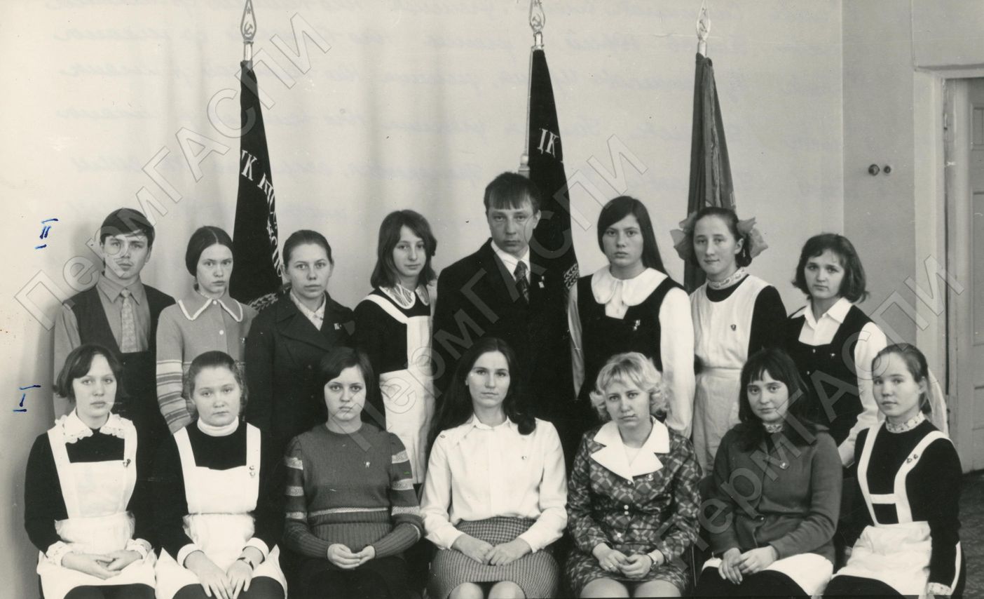 Пермский райком ВЛКСМ. Подписание рапорта ХХV съезду КПСС. 1-й ряд: 3) Беляева Галина, ученица Юго-Камской ср. школы 4) Гончарова Татьяна Григорьевна, секретарь РК ВЛКСМ 5) Медик Любовь ВВладимировна, инструктор РК ВЛКСМ 6) Коскова Алевтина, ученица Юго-Камской ср. школы 2-й ряд: 4) Спешилова Елена, ученица Юго-Камской ср. школы 5) Попов Юрий, ученик Юго-Камской ср. школы 7) Гусельникова Ирина, ученица Юго-Камской ср. школы
