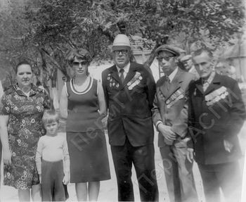 С.А. Балахонов (третий справа) среди родственников и друзей на праздновании Дня Победы в Великой Отечественной войне.