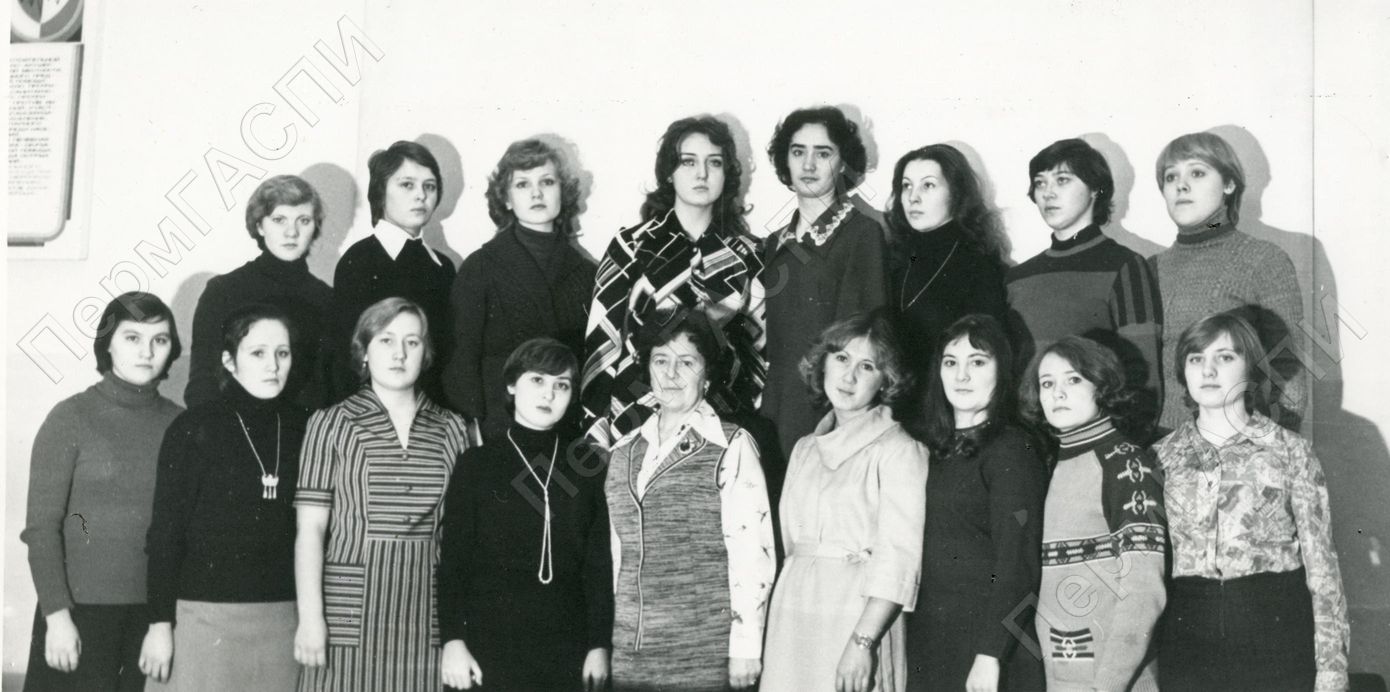 Медучилище. Ком. группа имени XVIII съезда ВЛКСМ. 1-й ряд: Могилинских, Чумак, Бабарыкина, Авдонова, Дическул Л.И., Кошелева, Табакова, Васекова, Балязина. 2-й ряд: Пачина, Петренко, Войнова Ольга, Рипеняк, Винокурова, Сенческова, Смирнова, Меркушева Марина.