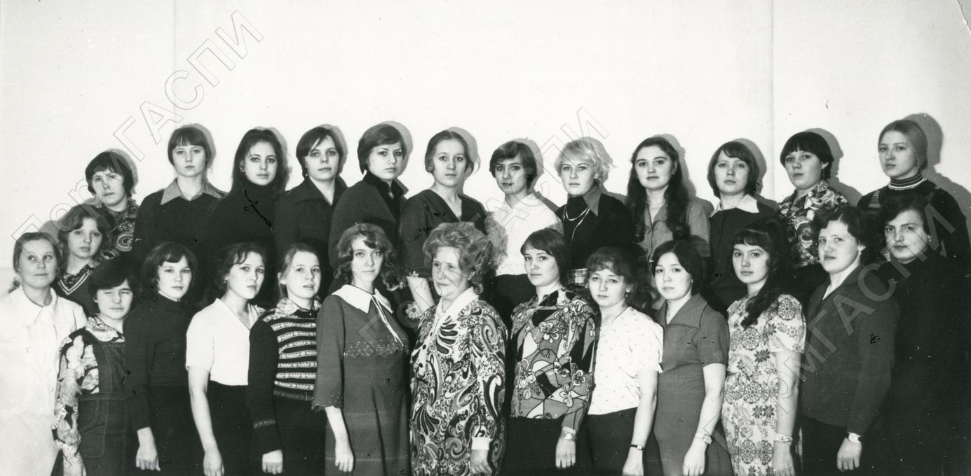 Пермское медучилище. Группа имени 60-летия ВЛКСМ. Ходина С. - комсорг, Черницкая М.И. - кл. рук., Ходина С., Анферова М., Баева Л., Бельтюкова Л., Ваганова С., Груздева Г., Дурегина В., Захарова М., Идиатулина Г.. Казанбаева Н., Колобова А., Машкина О., Мщурова Т., Навроцкая, Никулина Т., Новикова, Отегова Н., Павлова, Раимова, Сапронова, Степанова, Тайсина, Тапкова, Тимофеева, Тебнева, Теплоухова, Шарапова Л.