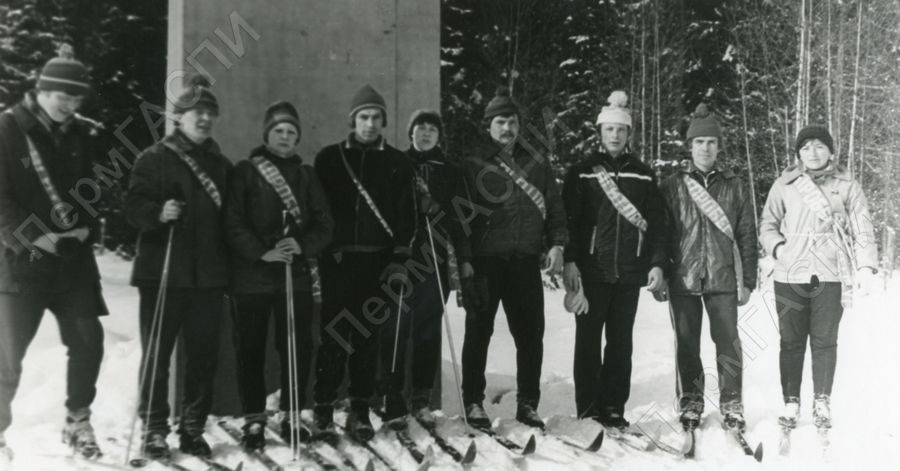 Две группы лыжного агитпробега, посвященного XXVI съезду КПСС, встретились у обелиска на месте приземления космонавтов А. Леонова и П. Беляева