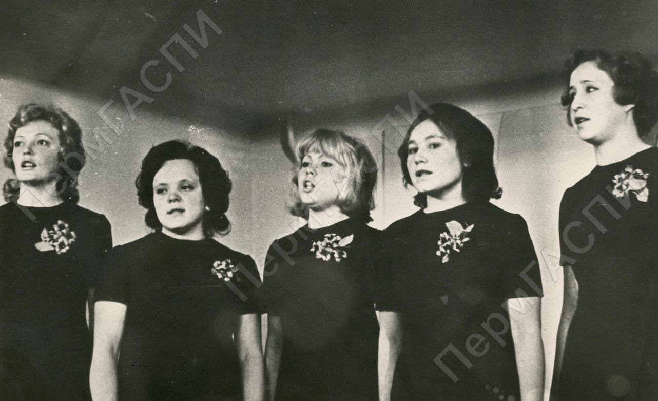 Трест № 7. Смотр художественной самодеятельности работников детских учреждений. Первая слева - секретарь комсомольской организации детских учреждений Смирнова Ф.