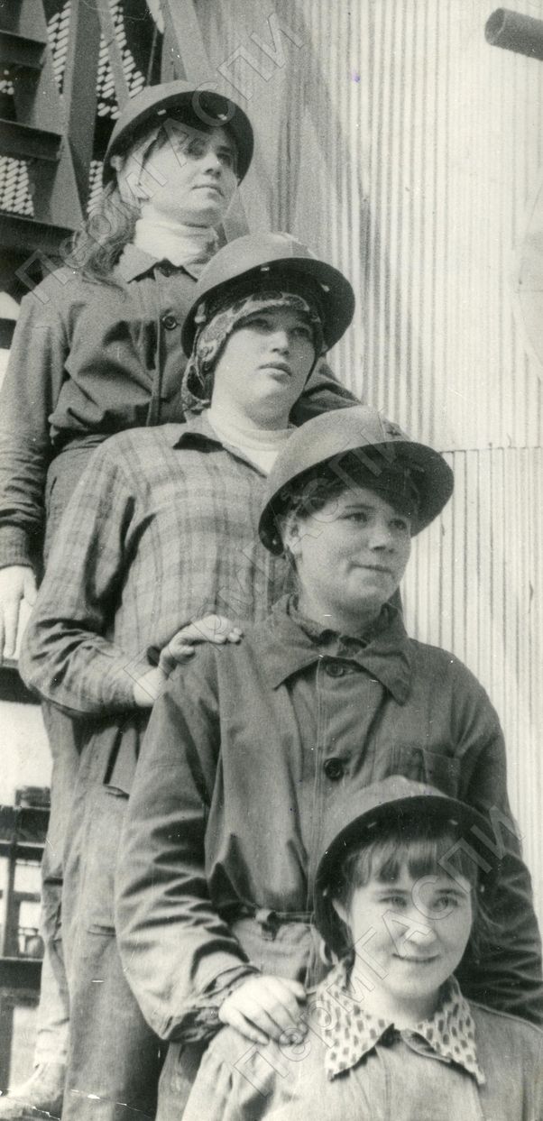 Изолировщицы из бригады Лебедевой Марии : сверху вниз: Десяткова Любовь, Плотникова ААлександра, Якушева Анна, Поварницына Валентина, трест №7.