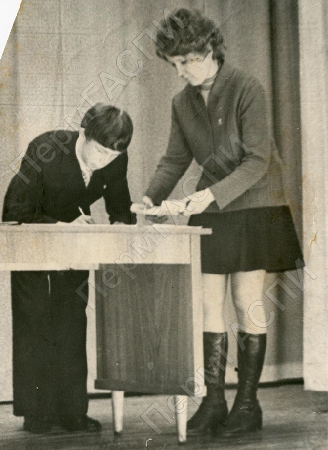 Пермский строительный техникум. Рапорт XXV съезду КПСС подписывает учащийся техникума Балдин А.