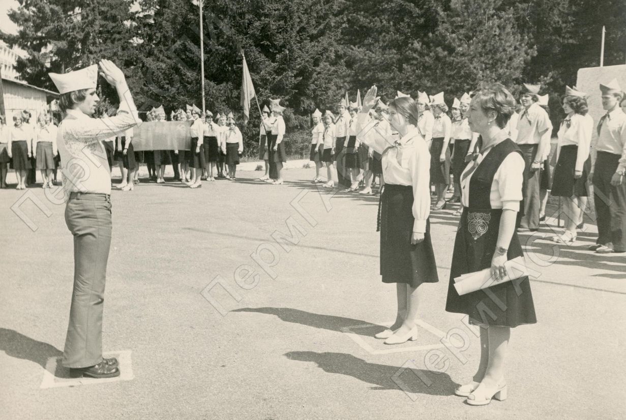 Инструктивно-методический лагерь, студенты пединститута проходят подготовку к работе в загородных летних пионерлагерях.