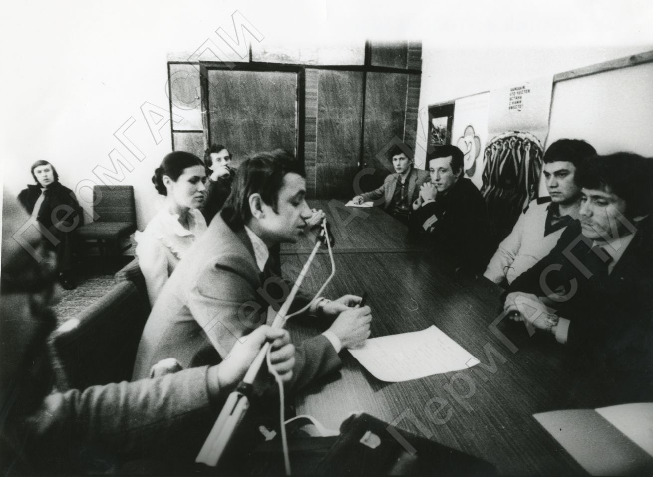 Встреча работников газеты "Молодая гвардия" с представителями комсомольских организаций КРП и БУП на передаче им "ключа экономии"