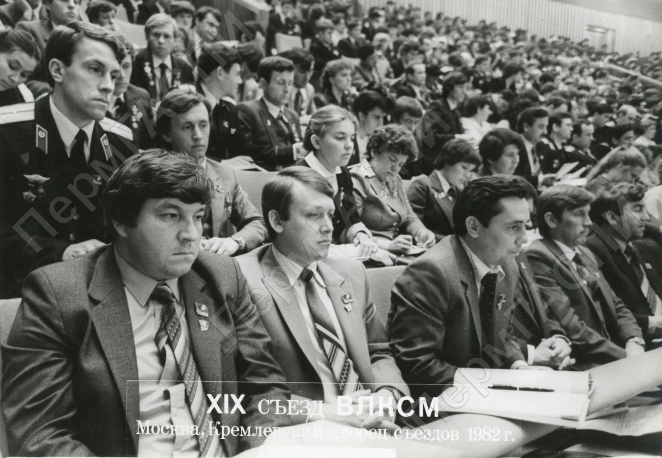 Пермская делегация на XIX съезде ВЛКСМ. 2-й слева в 1-м ряду I секретарь Пермского ГК ВЛКСМ Петенко