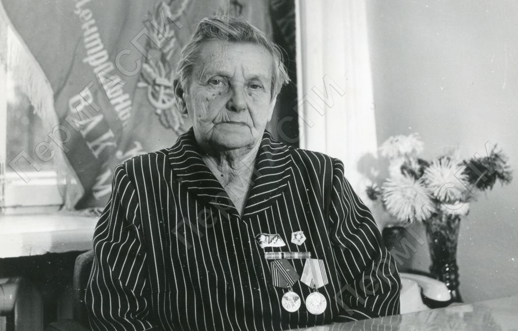 Ветеран комсомола, член совета ветеранов комсомола, член совета ветеранов комсомола Пинаева Зинаида Николаевна на районной отчетно-выборной конференции. Дворец культуры фанерного комбината