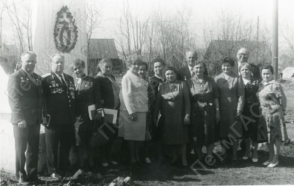 Выпускники 1941 года школы № 1 у памятника Герою Советского Союза А. П. Оборина. Школа № 1