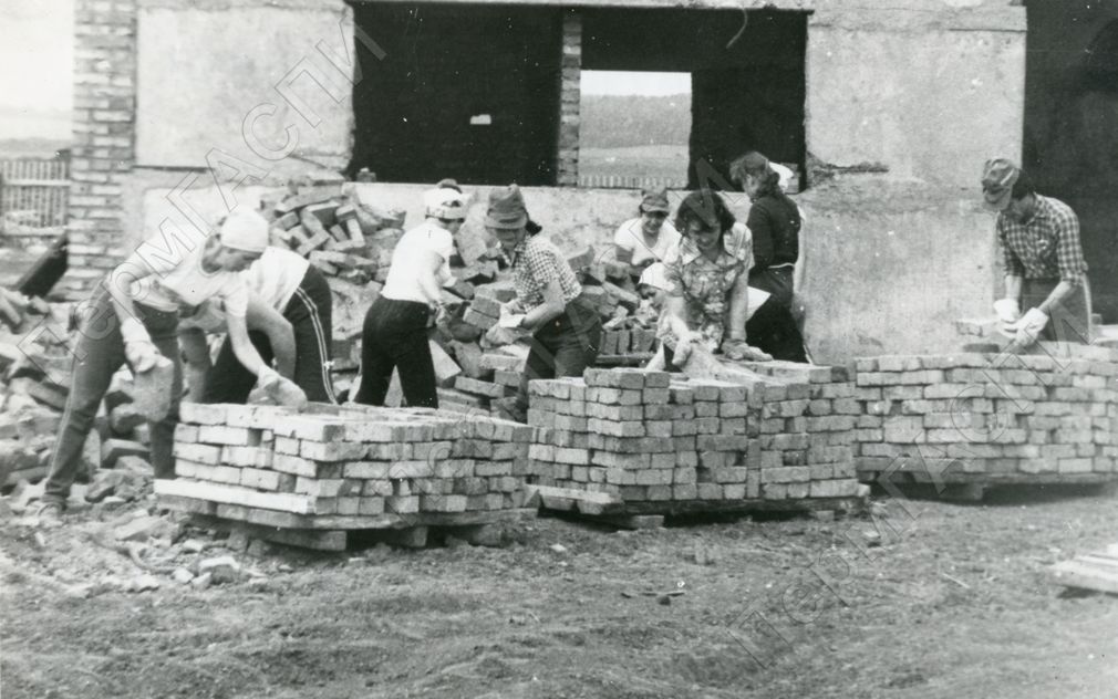 Комсомольский субботник с участием актива райцентра. На строительстве автотранспортного предприятия