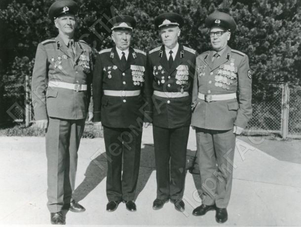 М.А. Аникин (1-й справа) с ветеранами Великой Отечественной войны, участниками парада на Красной Площади в честь 40-летия Победы в Великой Отечестваенной войны