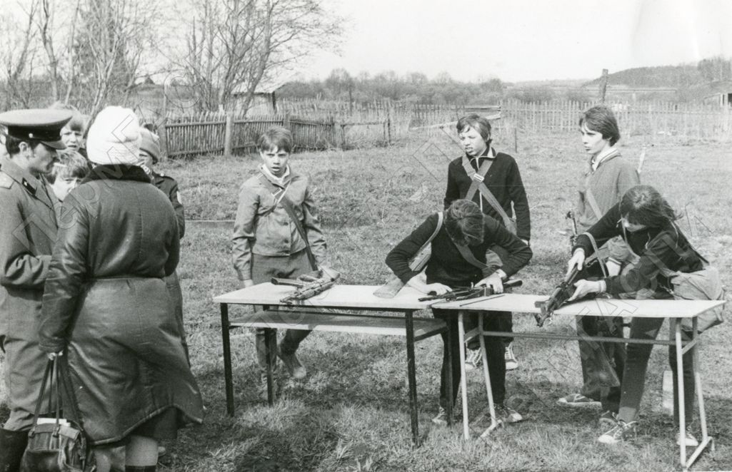 Пионерская игра "Зарница". Прохождение очереного этапа - разборка автомата учениками рождественской средней школы