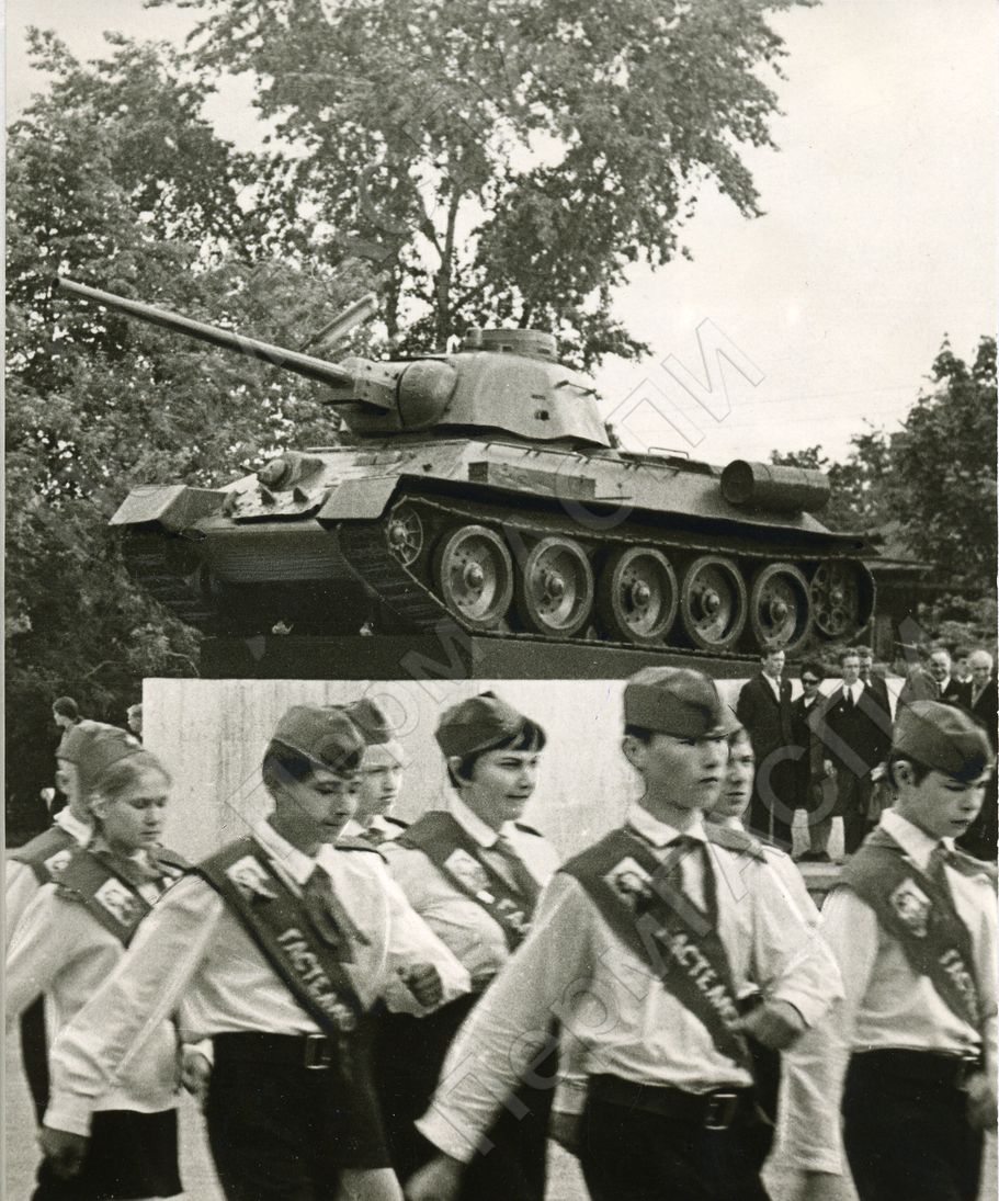 У мемориала уральским танкистам - добровольцам - пионеры - участники финальных соревнований военно - спортивной игры "Зарница".