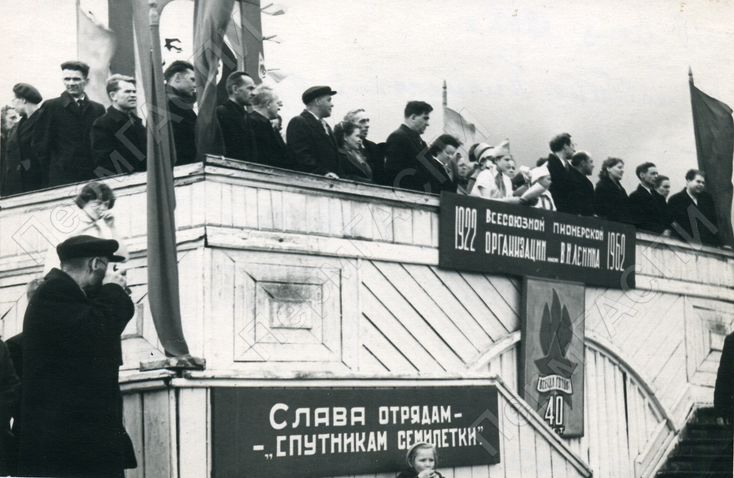 Демонстрация в день 40-летия пионерской организации. На трибуне пионерские вожатые 1920-1960-х гг.