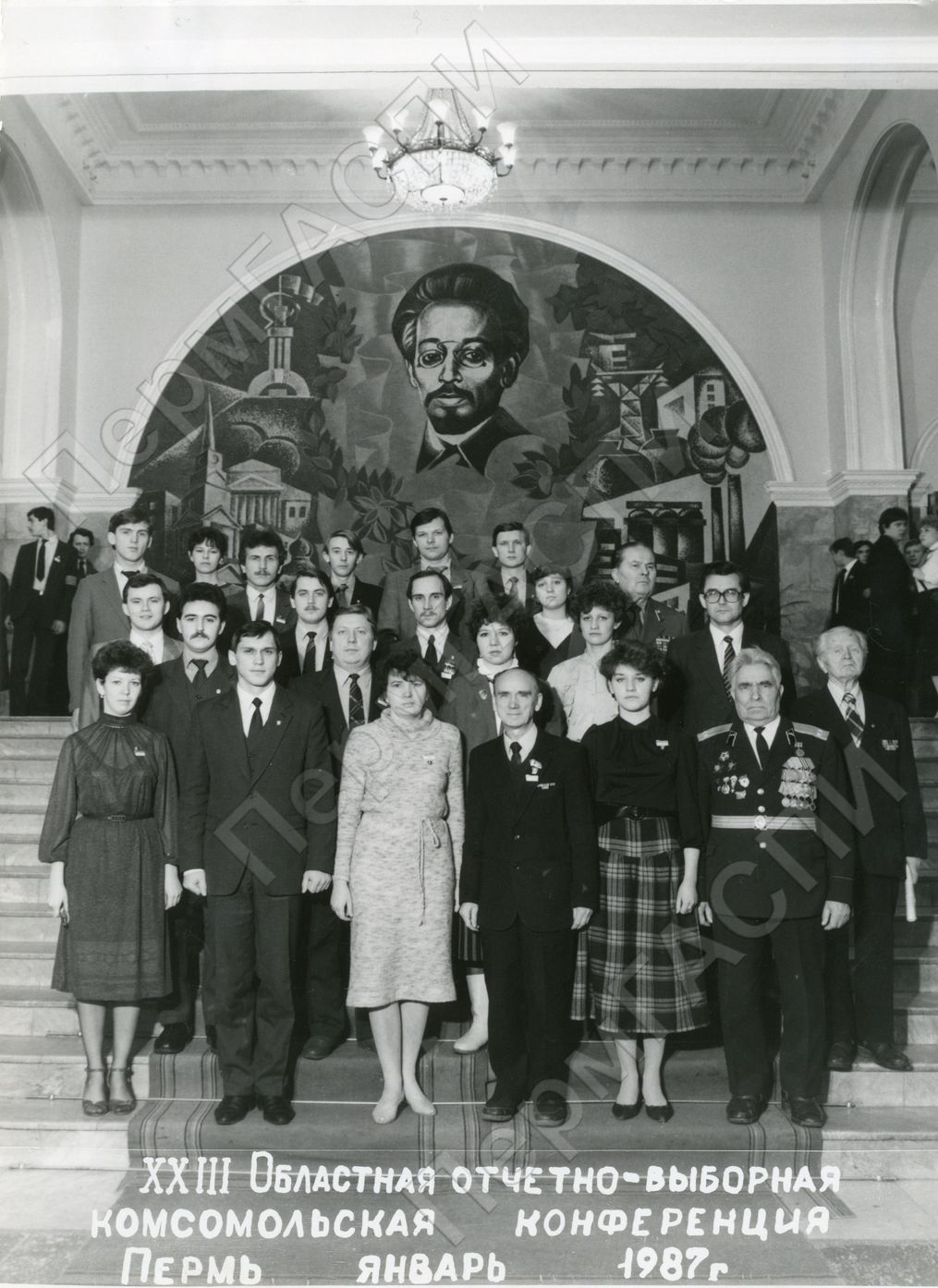 Делегация Дзержинской районной комсомольской организации на XXIII областной отчетно-выборной комсомольской конференции. ДК им. М.Я. Свердлова