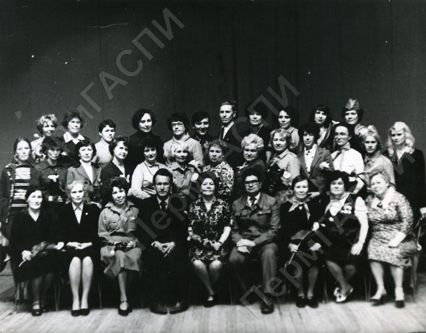 Пленум городского совета пионерской организации, посвященный 60-летию образования пионерской организации им. В. И. Ленина. Ветераны пионерского движения - I ряд работники домов пионеров и старшие пионерские вожатые.
