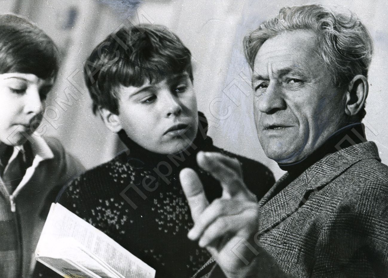 Лысвенский краевед, ветеран войны Аркадий Андреевич Карякин с юными краеведами Дворца пионеров и школьников.