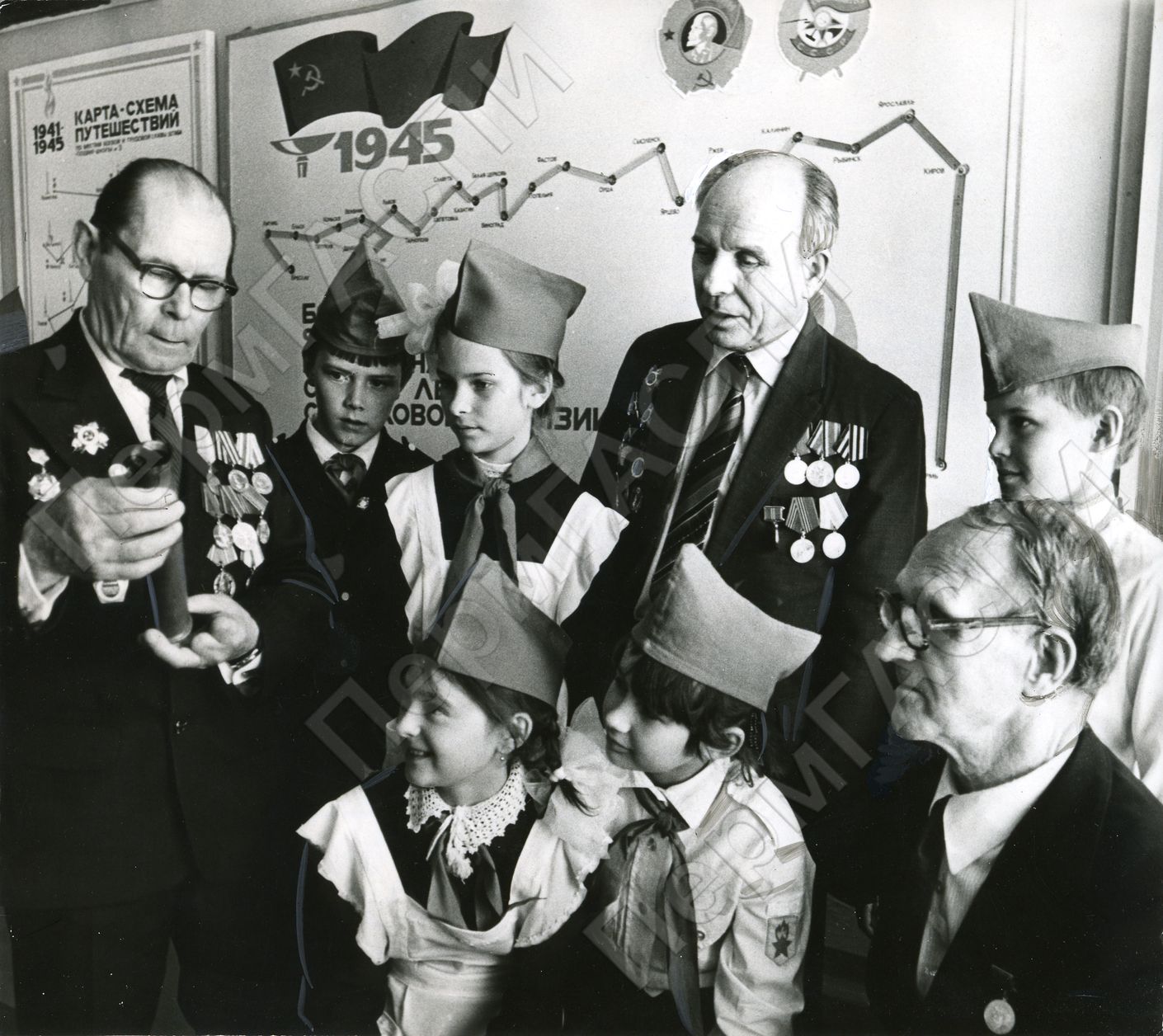 Встреча пионеров школы № 3 с участникоми Ярцевскойордена Ленина Краснознаменной стрелковой дивизии в музее боевой славы.