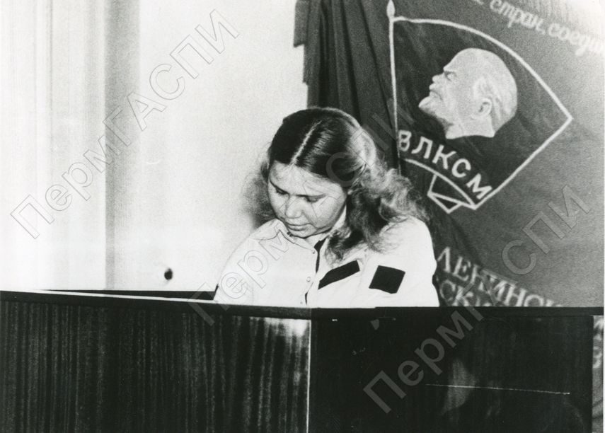 Подписание рапорта XXVI съезду КПСС комсомольцами передовиками социалистического соревнования Сысоевой Н.Ю.