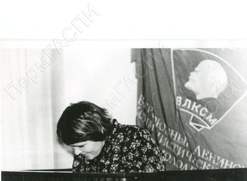 Байдина Надежда Васильевна, секретарь комсомольской организации совхоза Частинский подписывает рапорт 26 съезду КПСС
