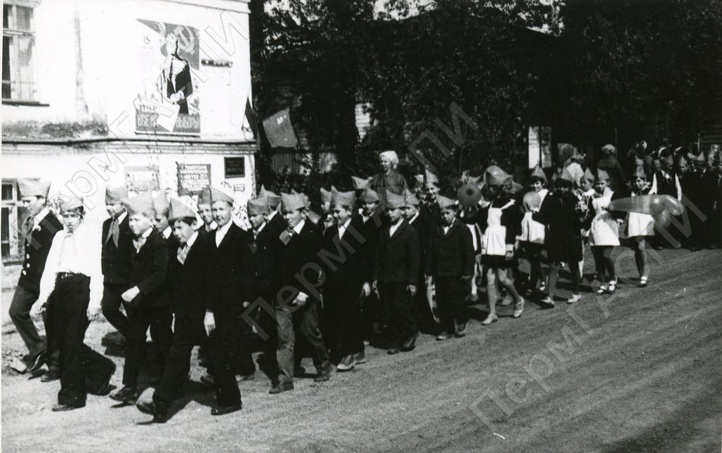 Демонстрация, посвященная 30-летию победы. Колонна учащихся Кишертской средней школы.