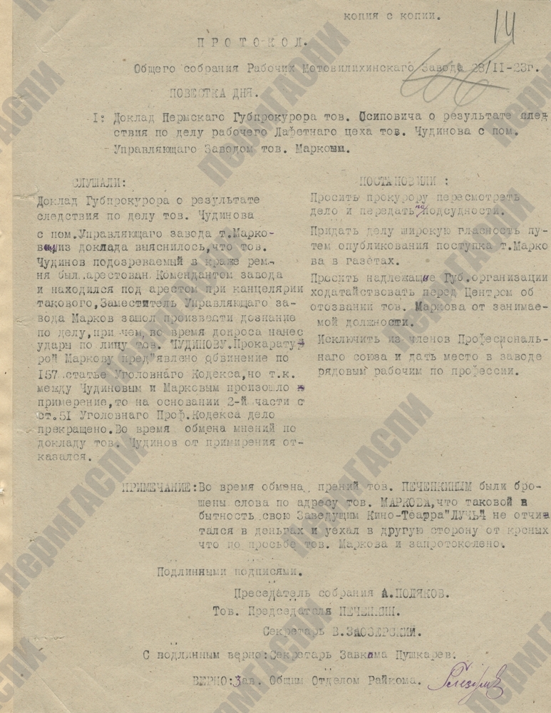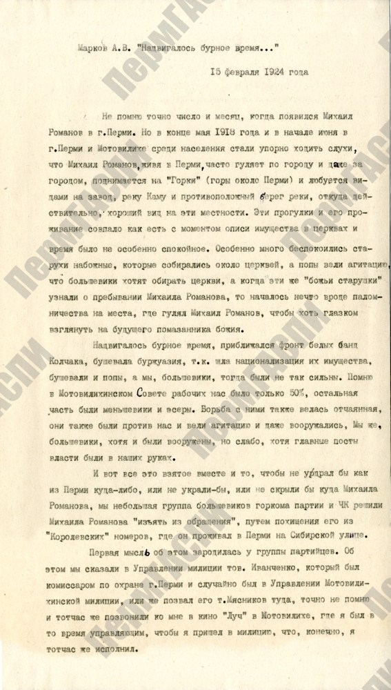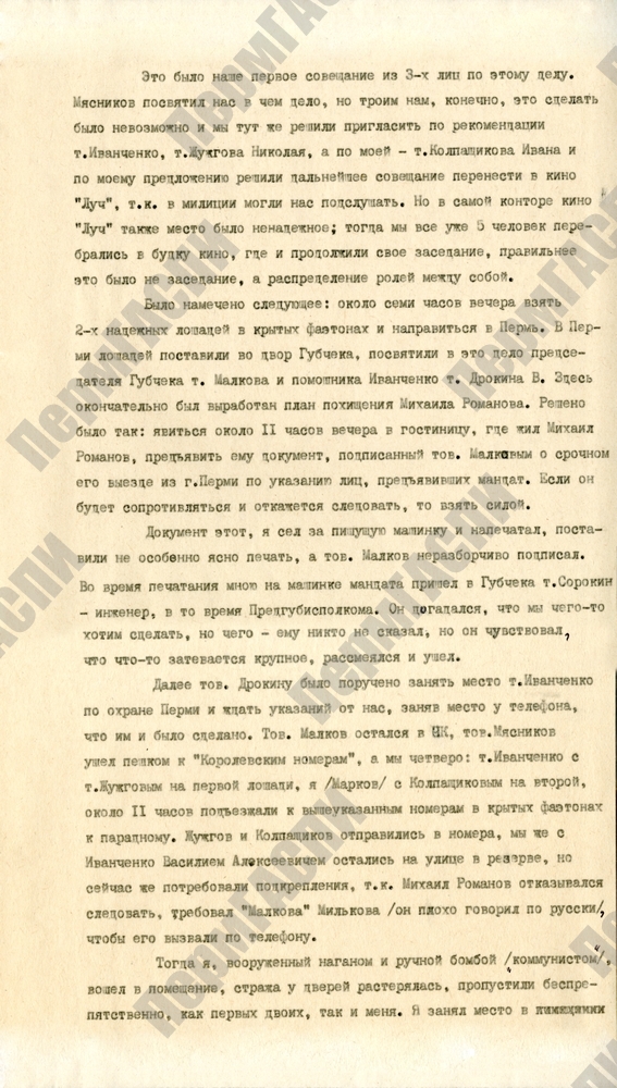Организаторы и участники убийства Великого Князя Михаила Александровича: