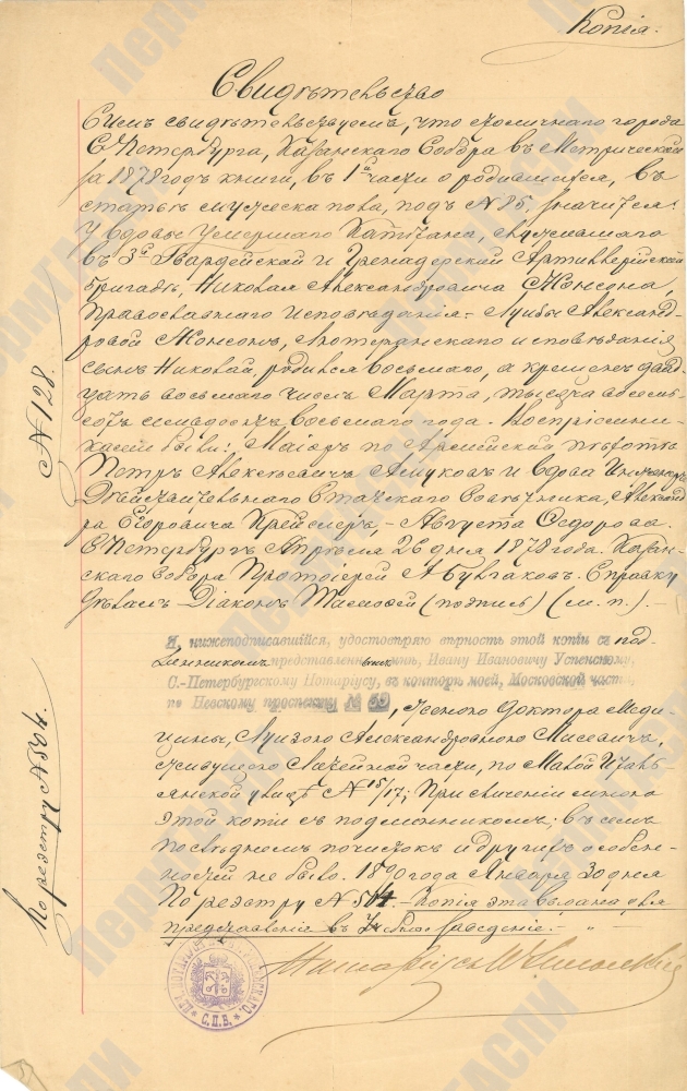 В 1914 г. Н.Н. Жонсон, как и Михаил Александрович, вернулся в Россию. Вскоре он был восстановлен на военной службе, а с 1916 г. являлся адъютантом Великого Князя. В 1917 г. в звании штабс-капитана Николай Николаевич был отправлен в отставку, но остался при Михаиле Александровиче, проживая вместе с ним в г. Гатчине в качестве личного секретаря.