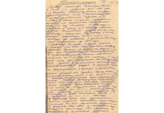 7 Автобиография Голева Леонида Дмитриевича. [2. Л. 17 – об].