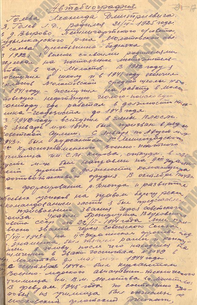 4 Автобиография Голева Леонида Дмитриевича. [2. Л. 17].