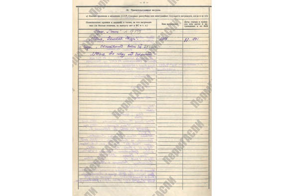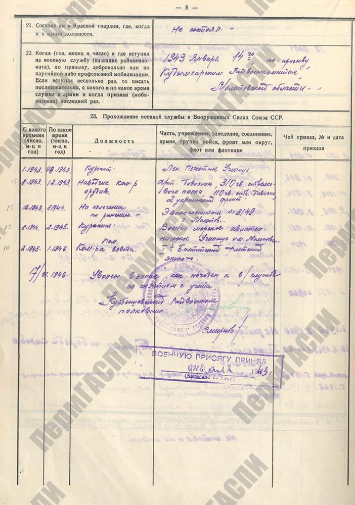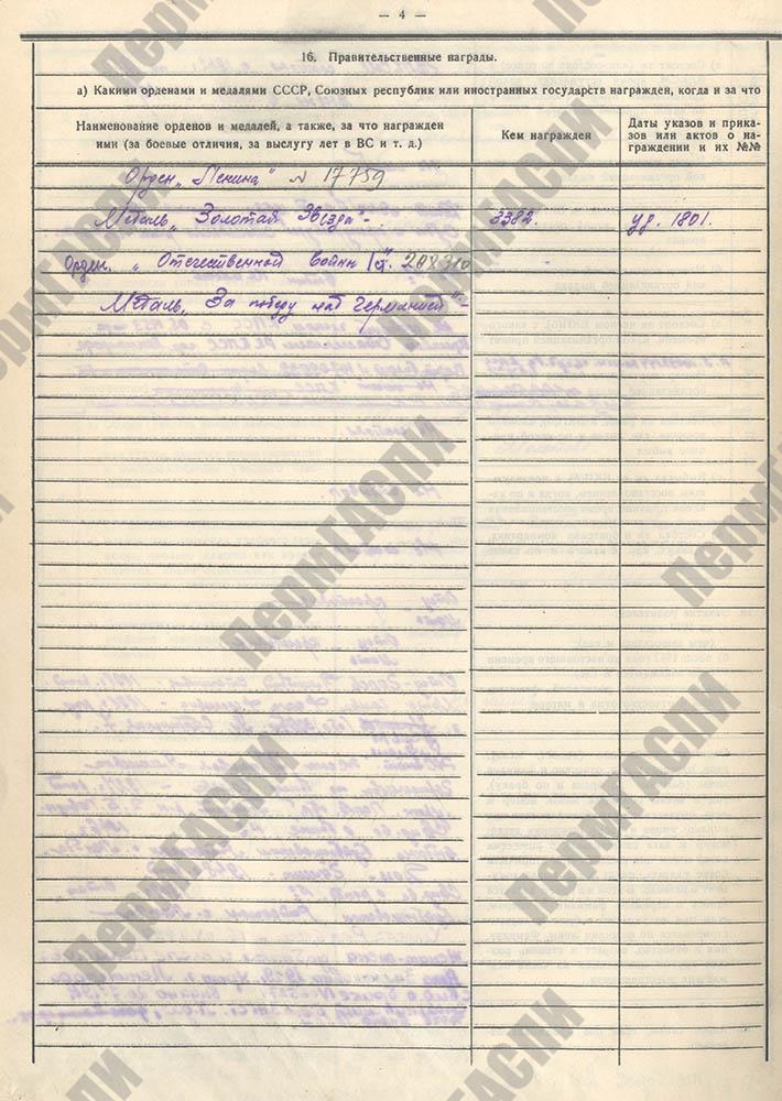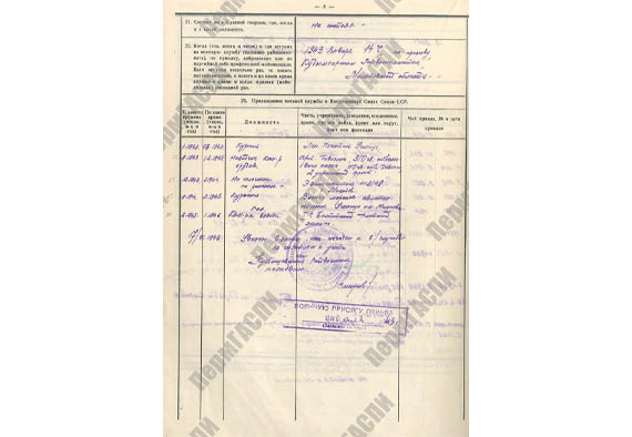 6 Послужной список. Голев Леонид Дмитриевич. Личный № А – 779478. Составлен 11 апреля 1952 г. гор. Ленинград. Военное Министрерство Союза ССР. [2. Л. 4].