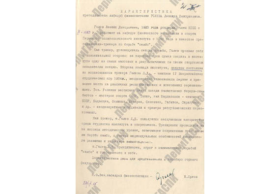 8 Характеристика преподавателя физвоспитания Голева Леонида Дмитриевича. [1. Л. 2].