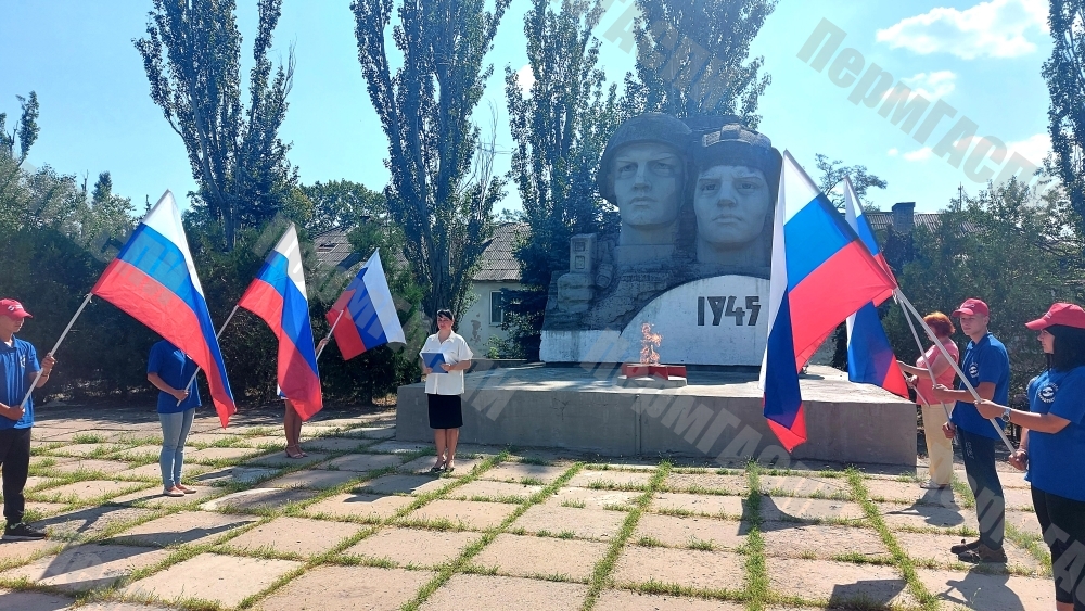 Участники проекта «Волонтеры Северодонецка» на мероприятии, проводимом в поддержку референдума о воссоединении Луганской Народной Республики с Россией. г. Северодонецк. Сентябрь 2022 г. ПермГАСПИ. ВПД