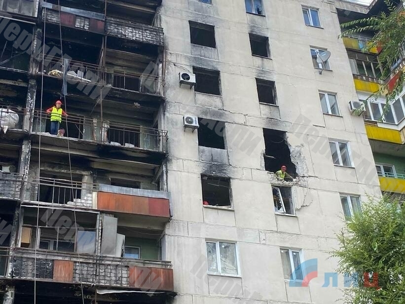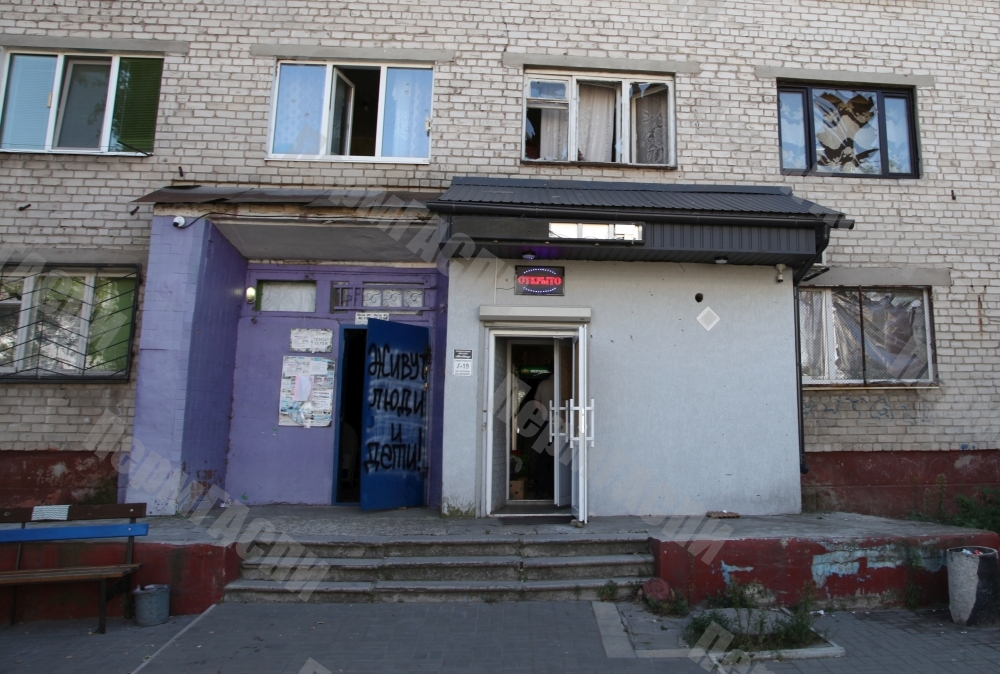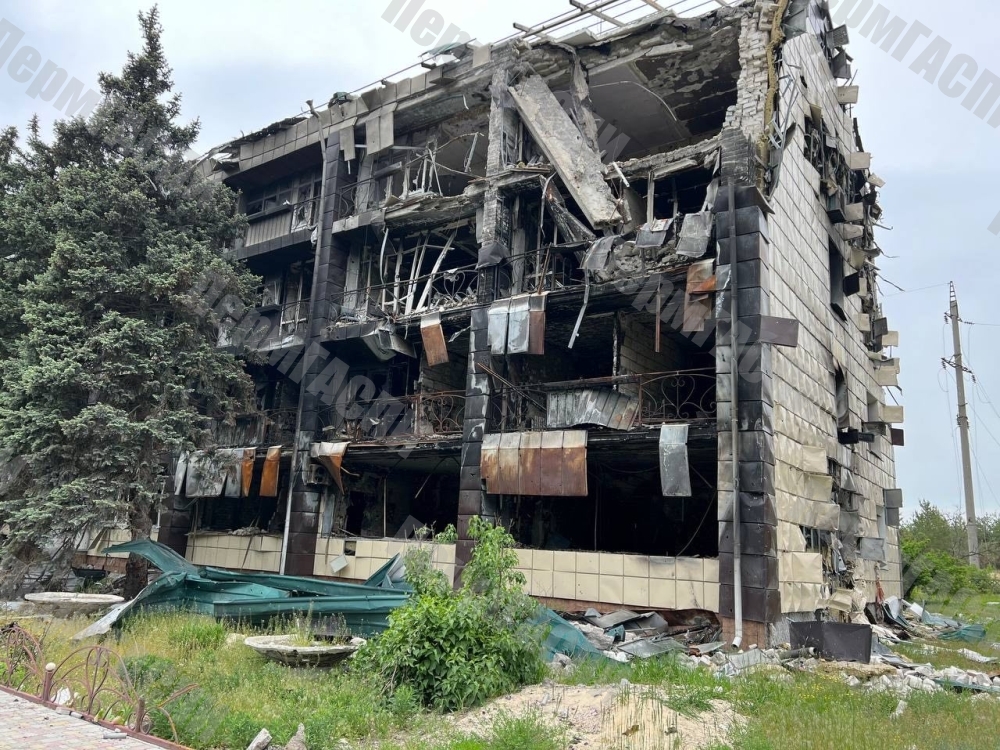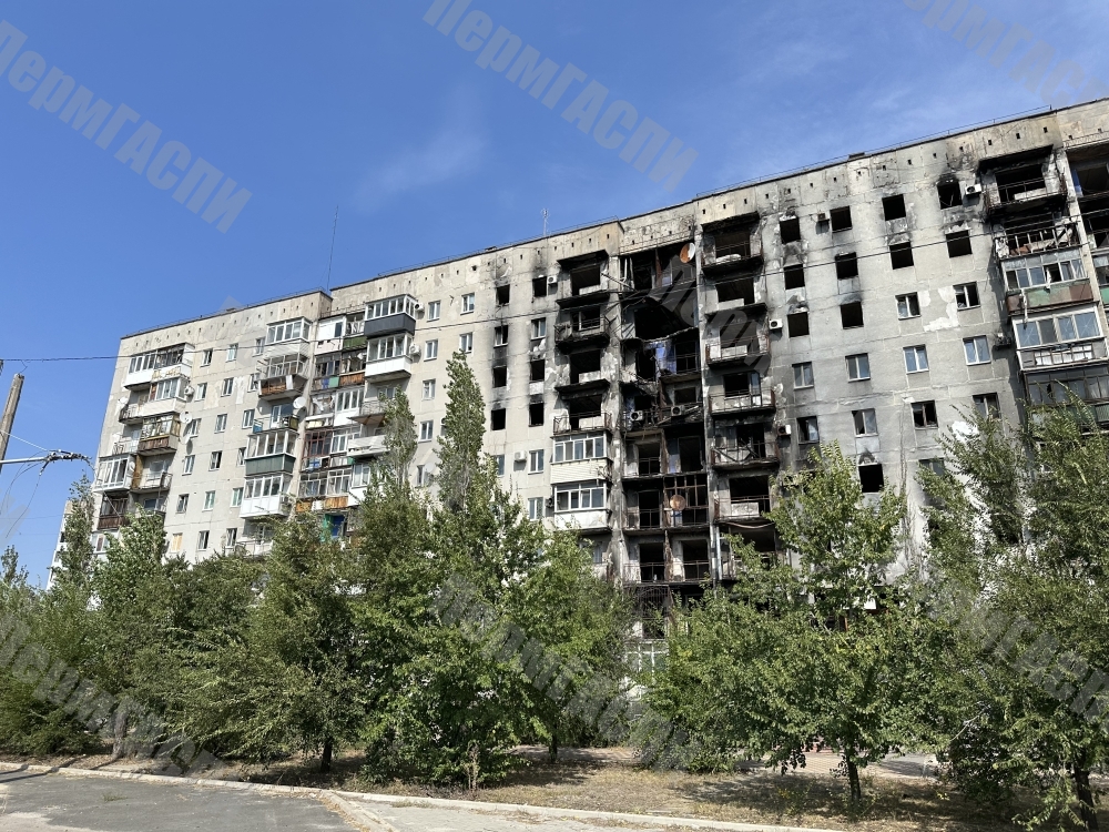 Четырехэтажный жилой дом в городе Северодонецке, ремонт которого осуществлялся строителями из Пермского края. Июль 2023 г. ПермГАСПИ. ВПД