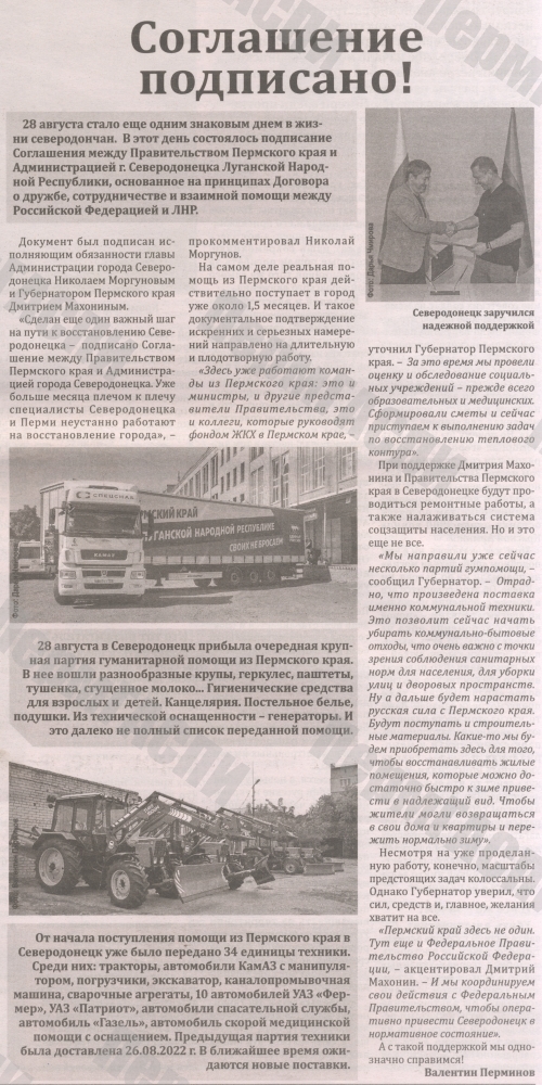 Пермский край делает всё возможное для возрождения Северодонецка и поддержки его жителей. Это товарищеская поддержка близких и родных людей, которые никогда не бросают своих.