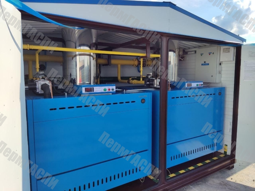 Газовые котельные собранные на заводе «Борткотломаш» по заказу МинЖКХ Пермского края для Северодонецка. Мощность каждой — 1,3 МВт. Котельные работают в автоматическом режиме, укомплектованы необходимыми системами регулировки и средствами защиты с уведомлением ответственных лиц о возникновении аварийной ситуации. г. Северодонецк. Август 2023 г. ПермГАСПИ. ВПД