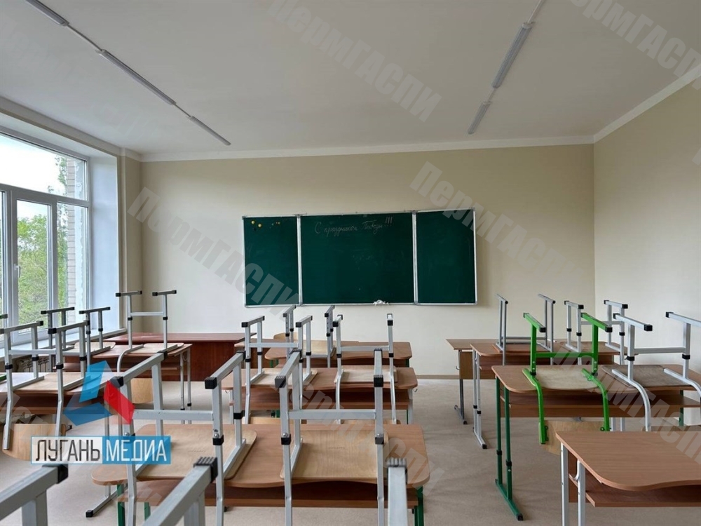 Один из учебных классов Боровского учебно-воспитательного комплекса после восстановления и ремонта. г. Северодонецк. Сентябрь 2023 г. ПермГАСПИ. ВПД