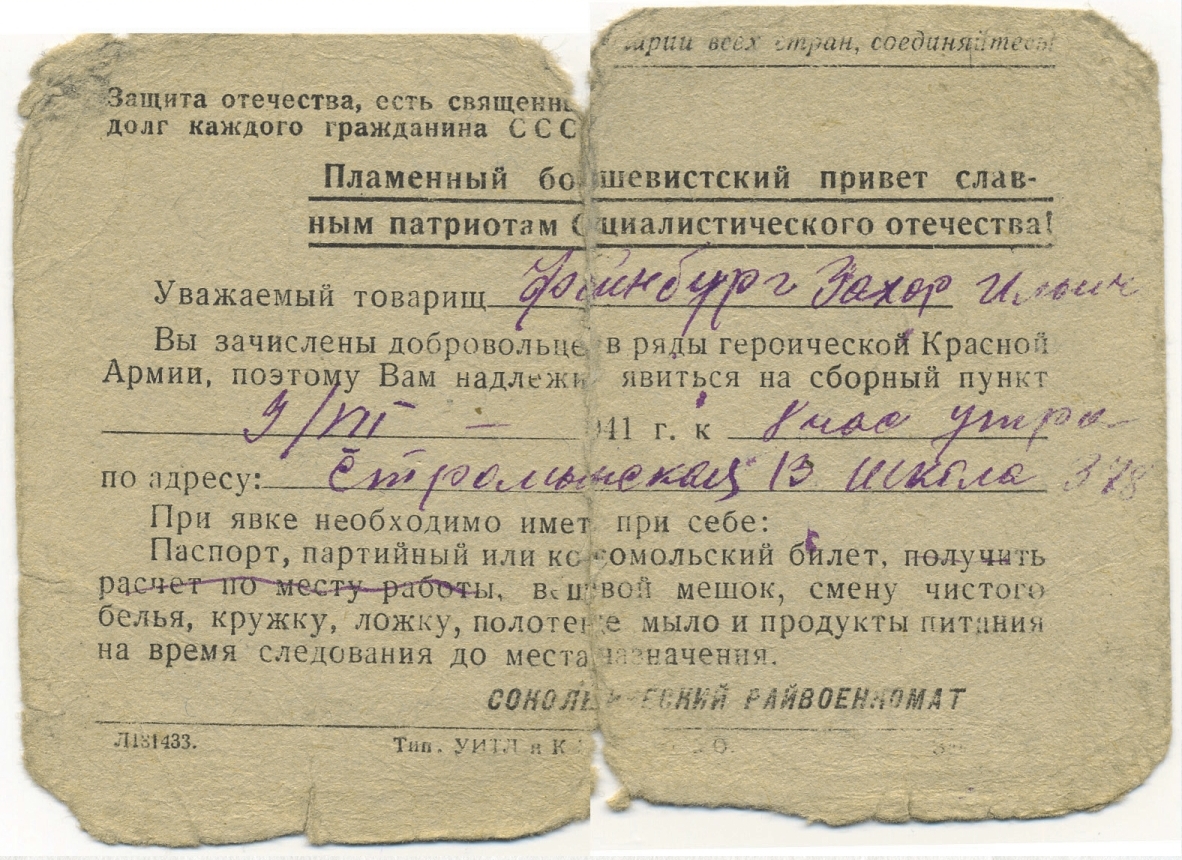 В 1941 году З.И. Файнбург – в пехоте, а в 1944-1945 гг. – в артиллерии. З.И. Файнбург часто говорил, что если Украину он прошел пешком с Запада на Восток, вооруженный сначала винтовкой, потом автоматом, то родную Белоруссию проехал с Востока на Запад на мощном трехосном «Студебеккере», тянувшем 122-мм гаубицу.
