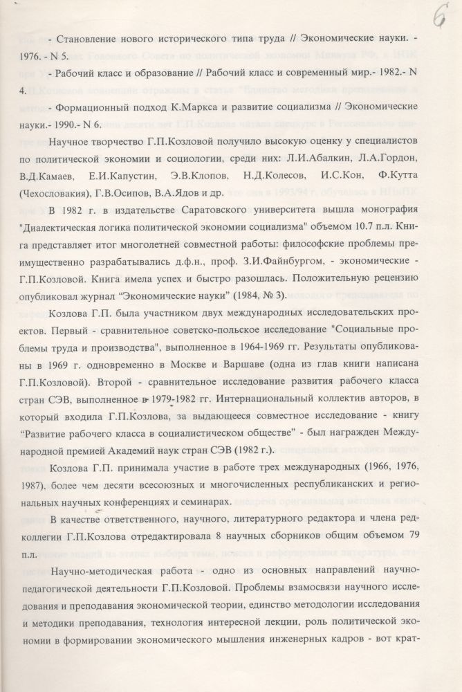 и практических проблем, нашло отражение в неоднократных выступлениях Г.П. Козловой перед различными аудиториями, в том числе на Головном Совете по политической экономии