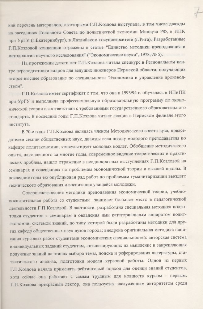 Г.П. Козловой. Она никогда не повторялась, ибо считала, что лекция должна захватывать слушателя, завоевывать не только его ум, но и душу, а достичь этого можно только в результате