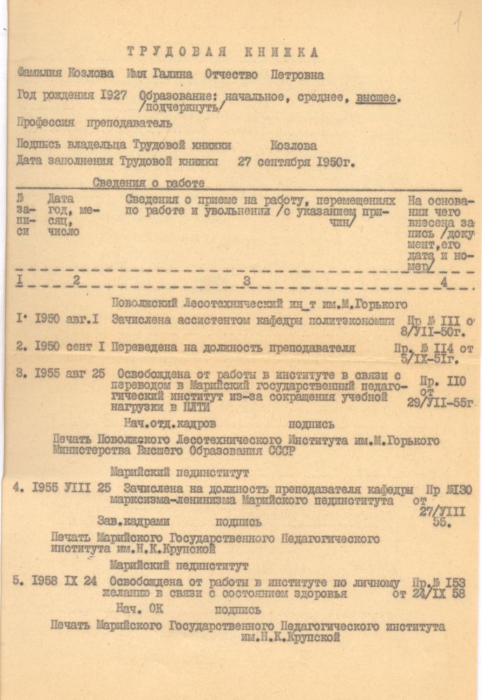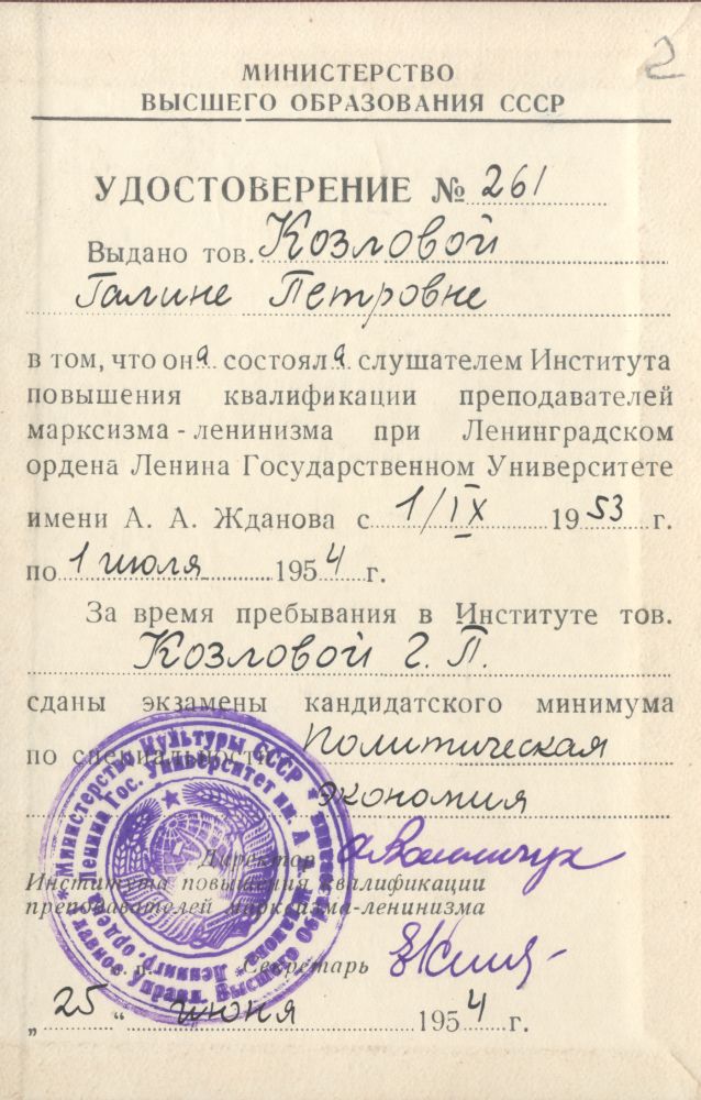 С 1950 года на протяжении полувека Галина Петровна - профессиональный «преподаватель политэкономии» (так написано в ее дипломе МГУ) успешно учила своих многочисленных