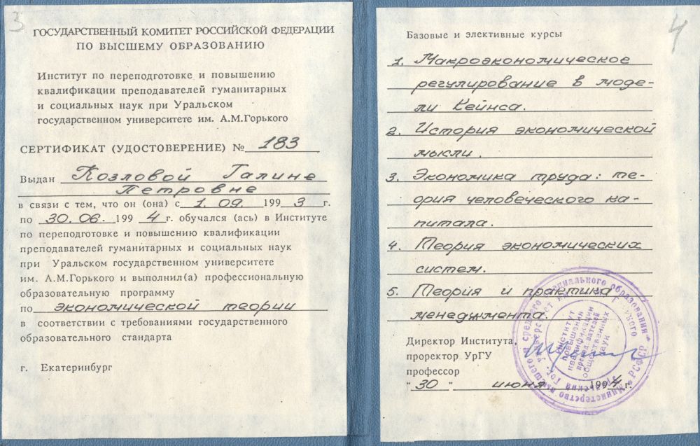 Кроме того, на протяжении десяти лет она вела спецкурс в Региональном межотраслевом центре переподготовки кадров для ведущих инженеров и экономистов Пермской области.