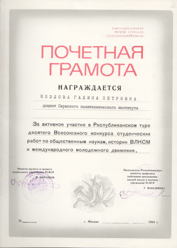 18 марта 2022 года исполнилось 95 лет со дня рождения замечательному пермскому педагогу - Козловой Галине Петровне (18.03.1927-24.02.2000).