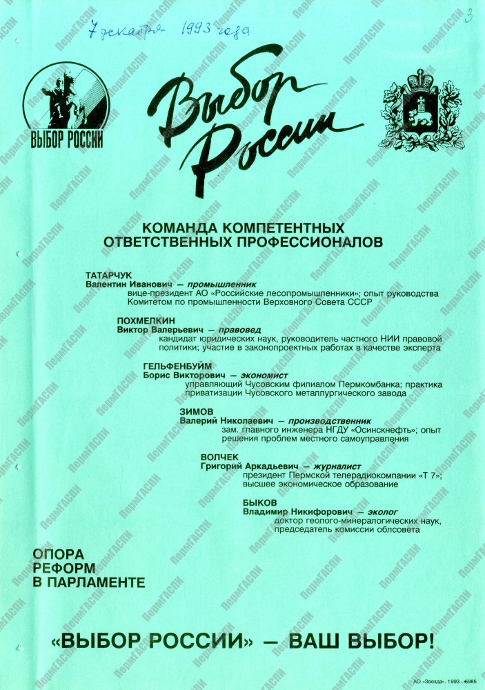 Выборы депутатов Государственной Думы РФ 12 декабря 1993 г.